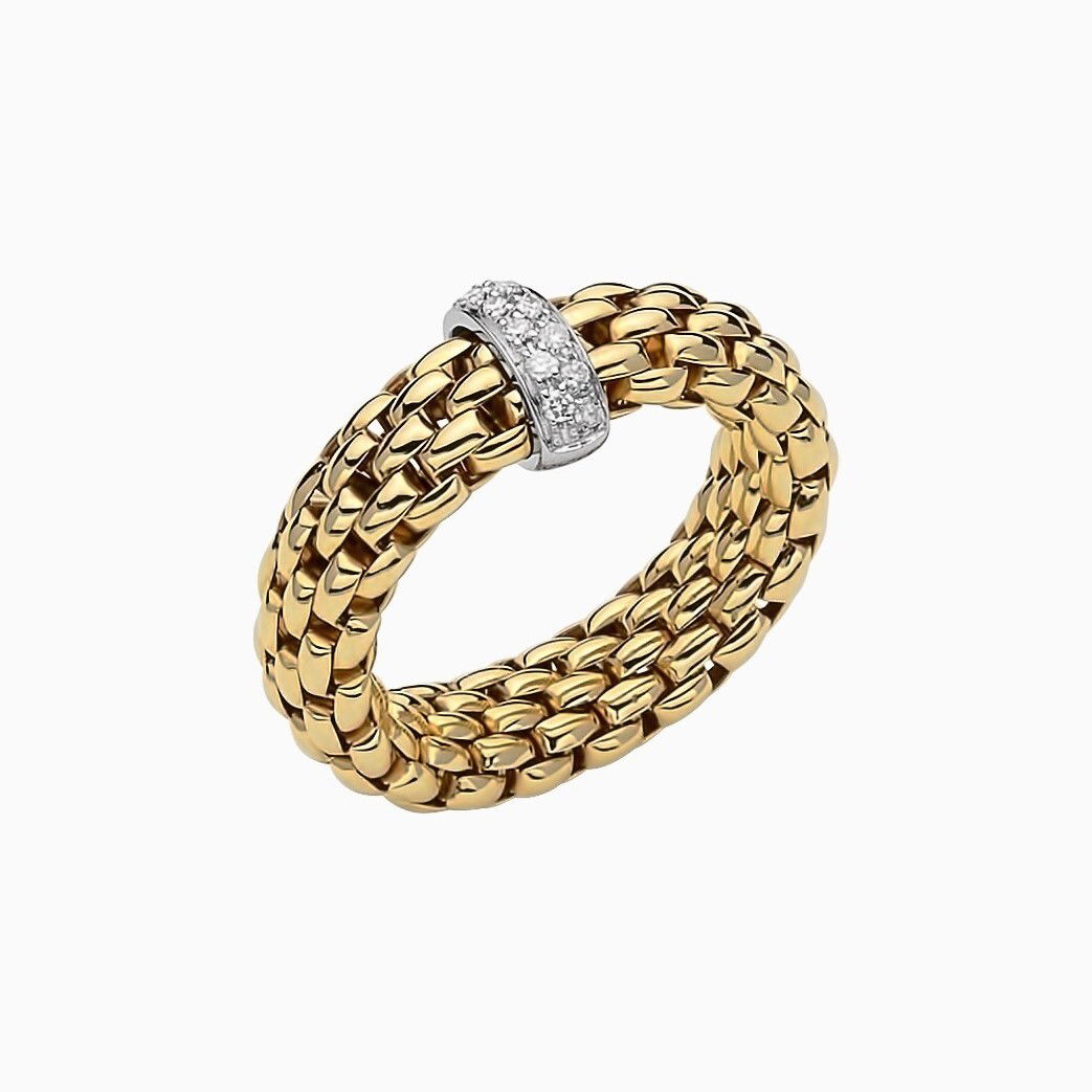 Vendome Flex'It Ring in 18kt Yellow Gold with One White Gold Bar set with 0.10ctw in pave white diamonds - Size Medium (7 - 8) AN559 BBRM-YW
