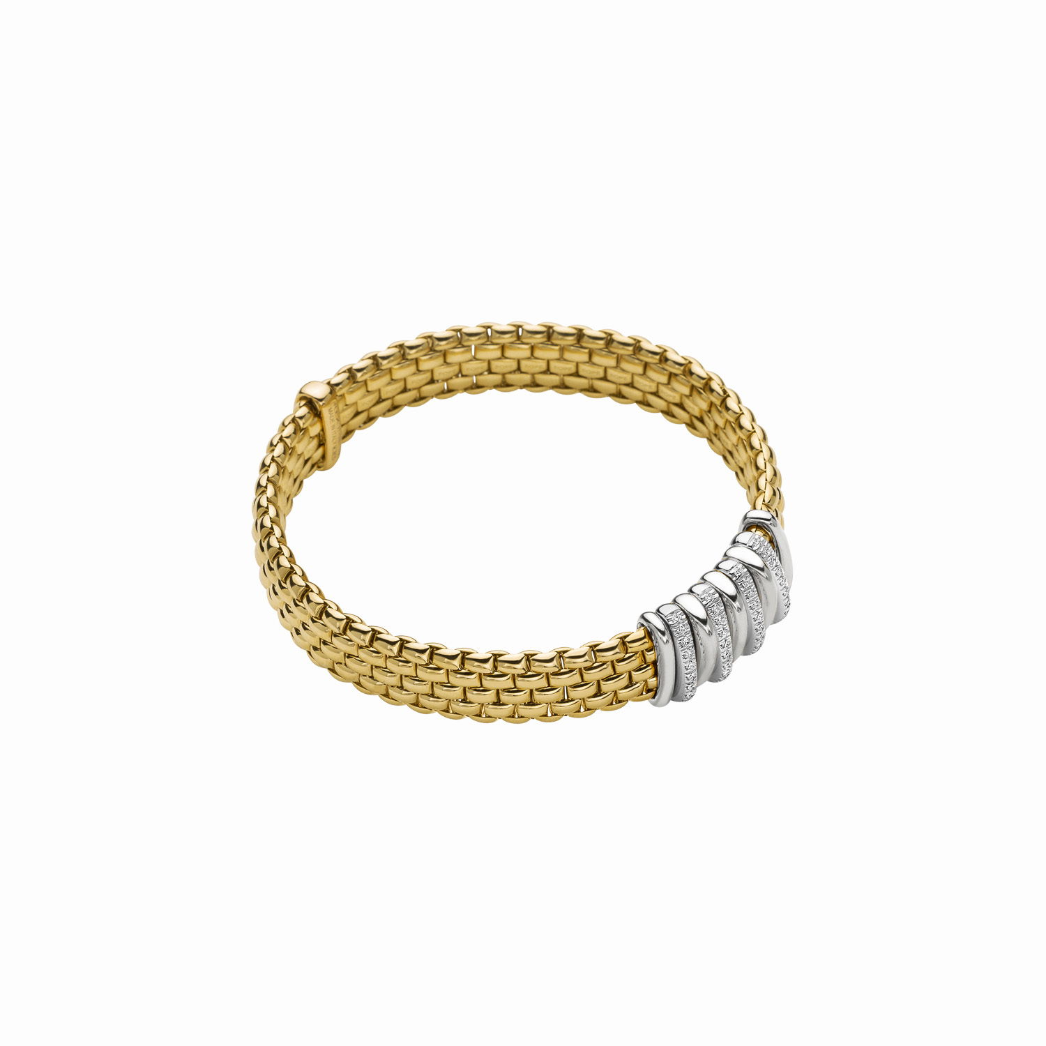 Panorama Bracelet in 18kt Yellow Gold with Alternating White Gold Bars and Pave Diamond Bars - 9mm - Size XL