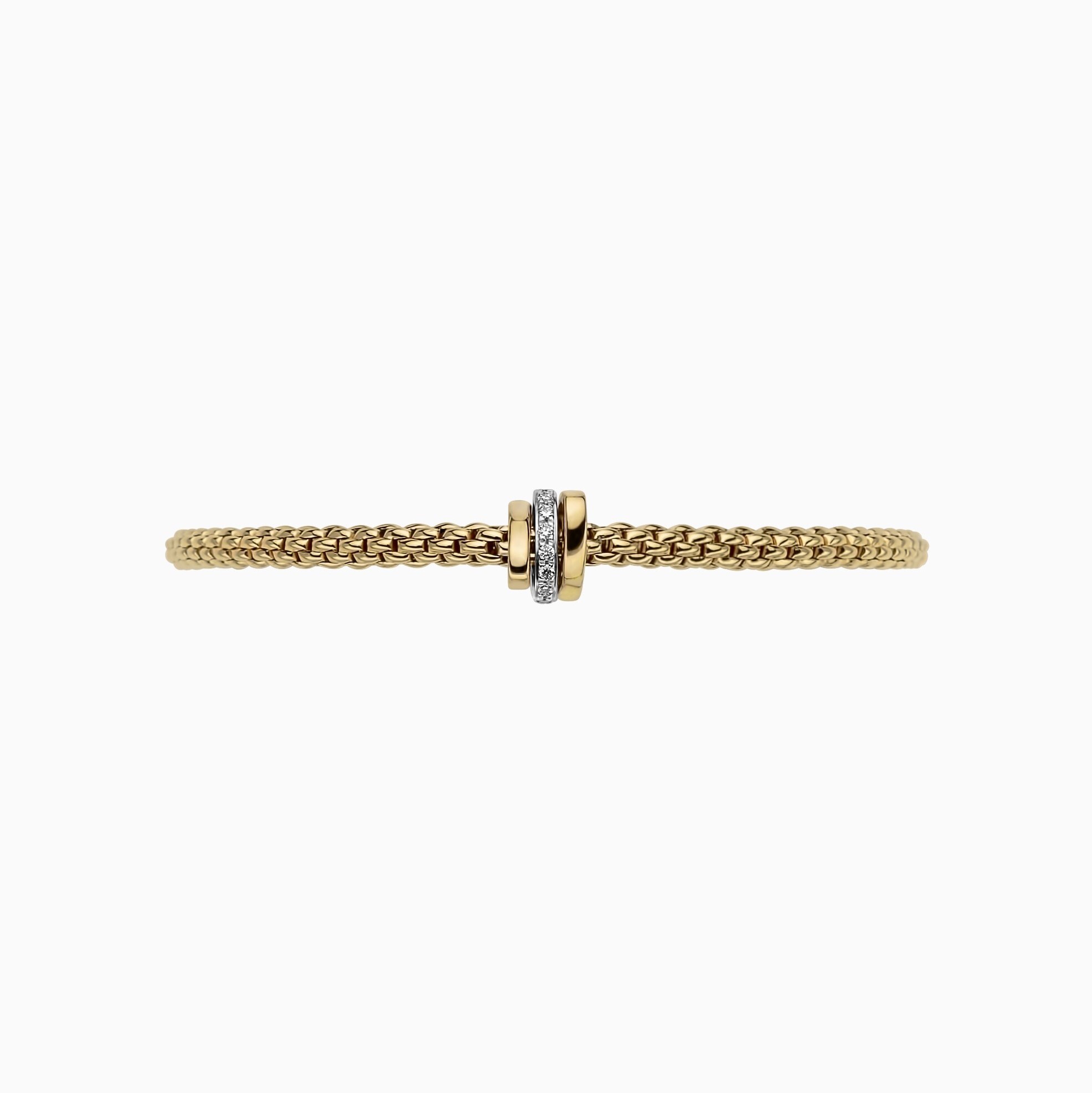 Prima Flex'It Bracelet in 18kt Yellow Gold with two plain yellow gold and one White Gold and White Pave Diamond Elements at 0.10ctw - The bracelet measures 3.4mm in diameter and is a size extra large, 19cm or 7.48 inches internal circumference.