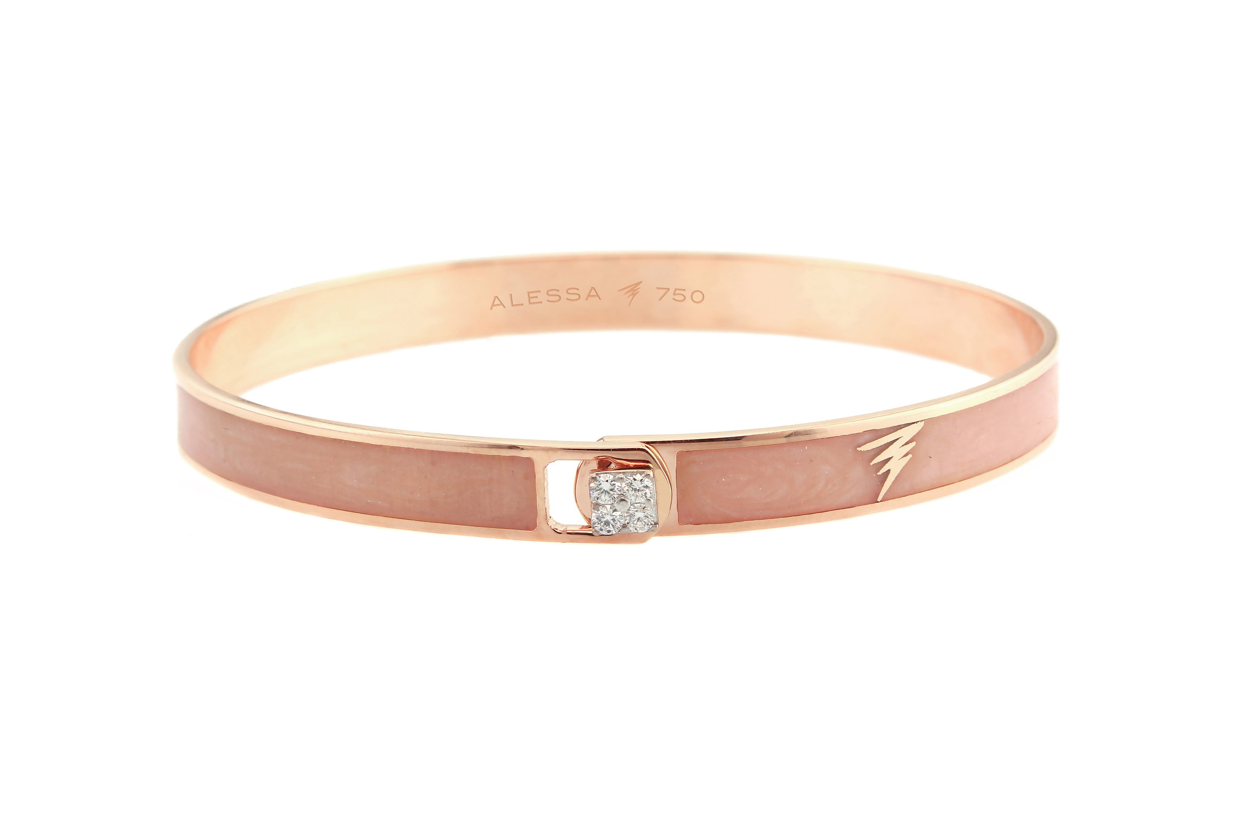 - Spectrum Bangle Bracelet with Rose Quartz Enamel and White Diamonds in 18kt Rose Gold - Size 16