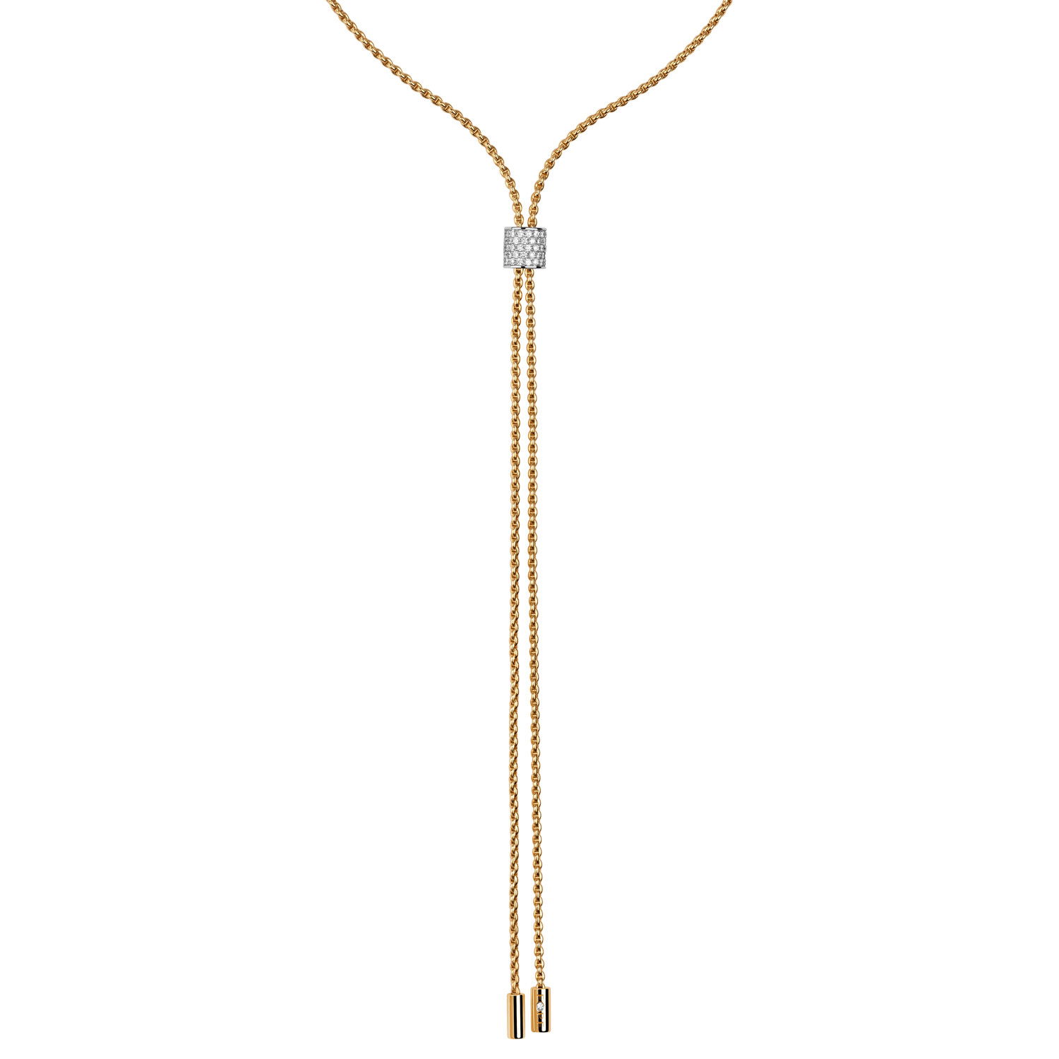 Aria Double Lariat Necklace with Pave White Diamond Pull in 18kt Yellow Gold - 100cm
