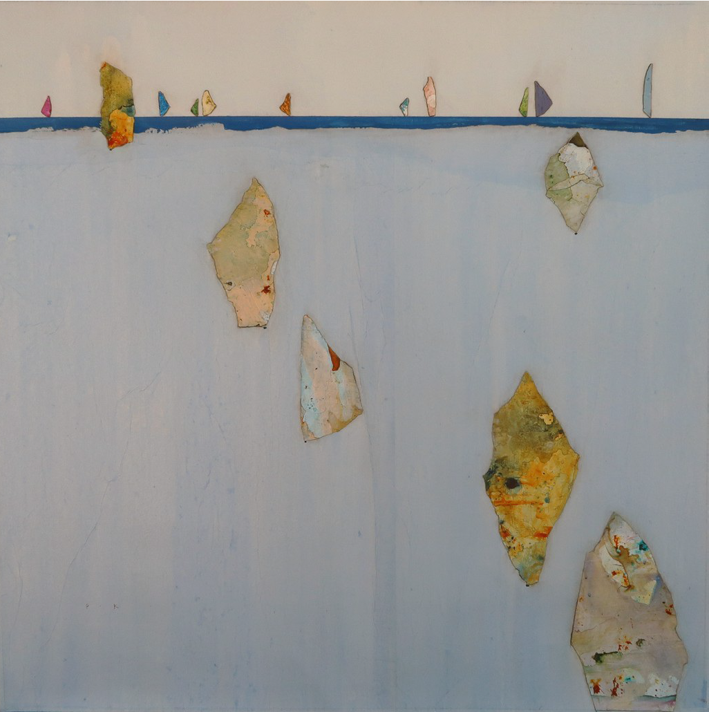 This mixed media on canvas wall art by Peter Kuttner is a lively and colorful piece with intoxicating texture and depth. Part of the artist’s Cut-Out series, Anchor resembles sails on a body of water.