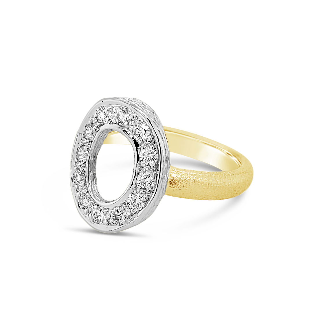 Large Oval Link Ring with Diamonds on 18kt Yellow Gold Band by Aaron Henry Designs. One large oval link in 18kt white gold set with 0.36ctw of white diamonds with an 18kt yellow gold band.