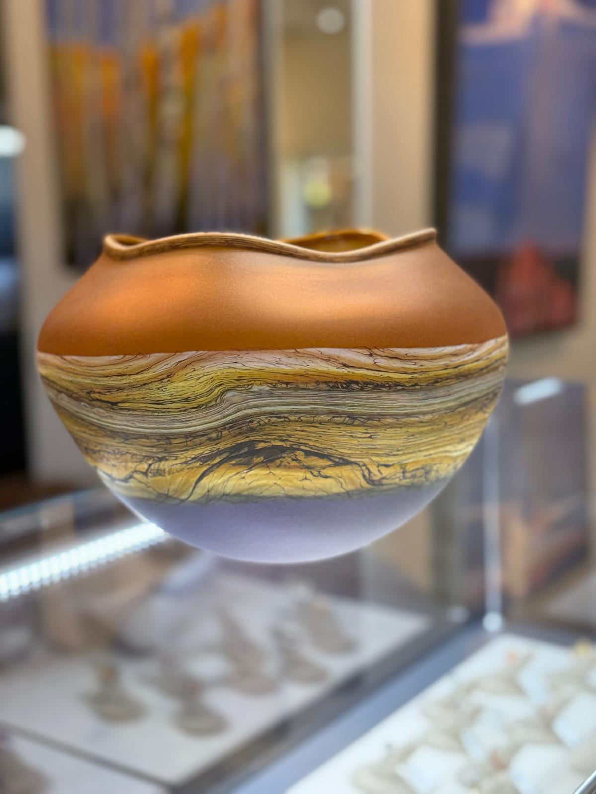 Agate Sphere Vessel in Lime and Amethyst Glass