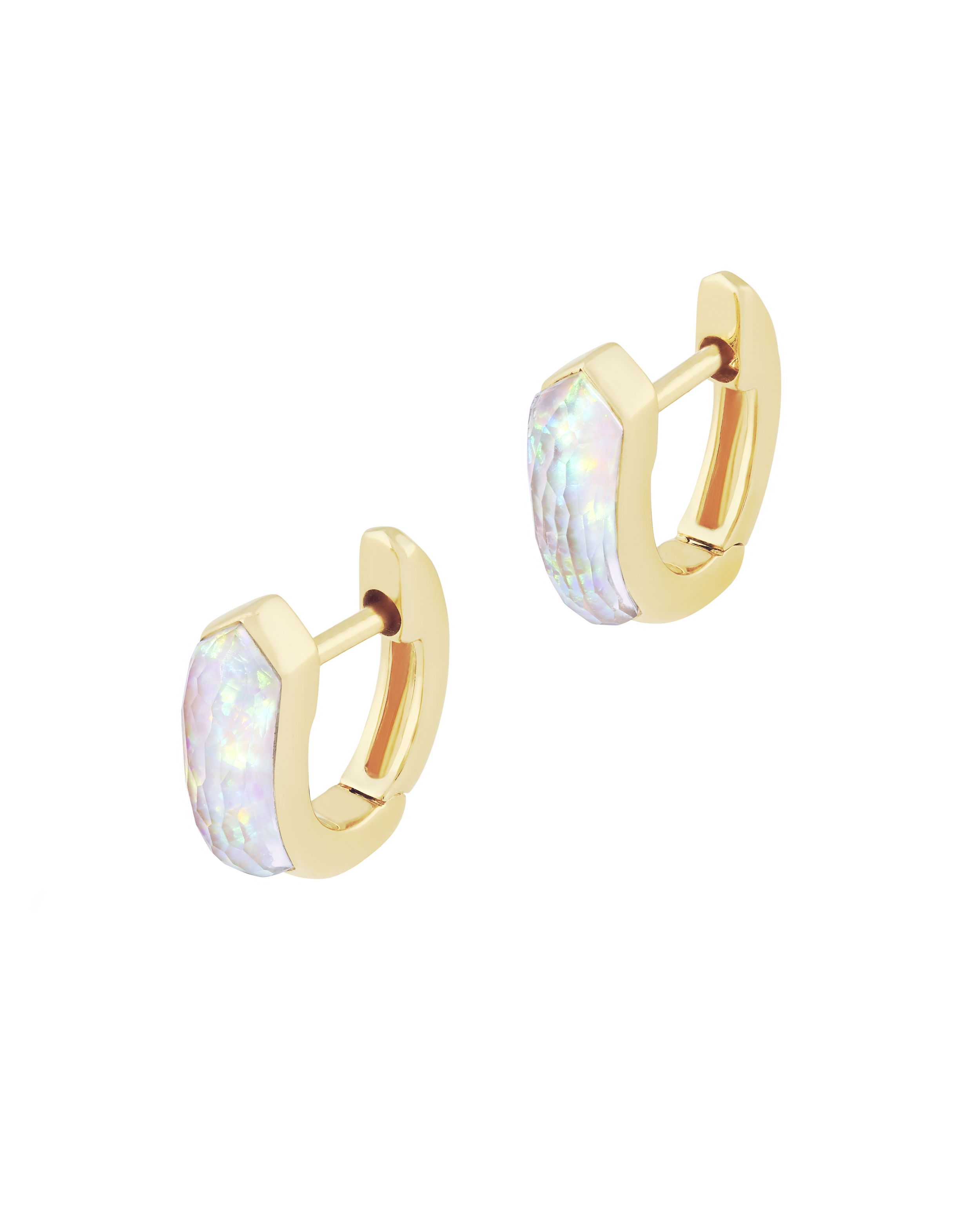 CH2 Sleeper Huggie Hoop Earrings with White Opalescent in 18kt Yellow Gold