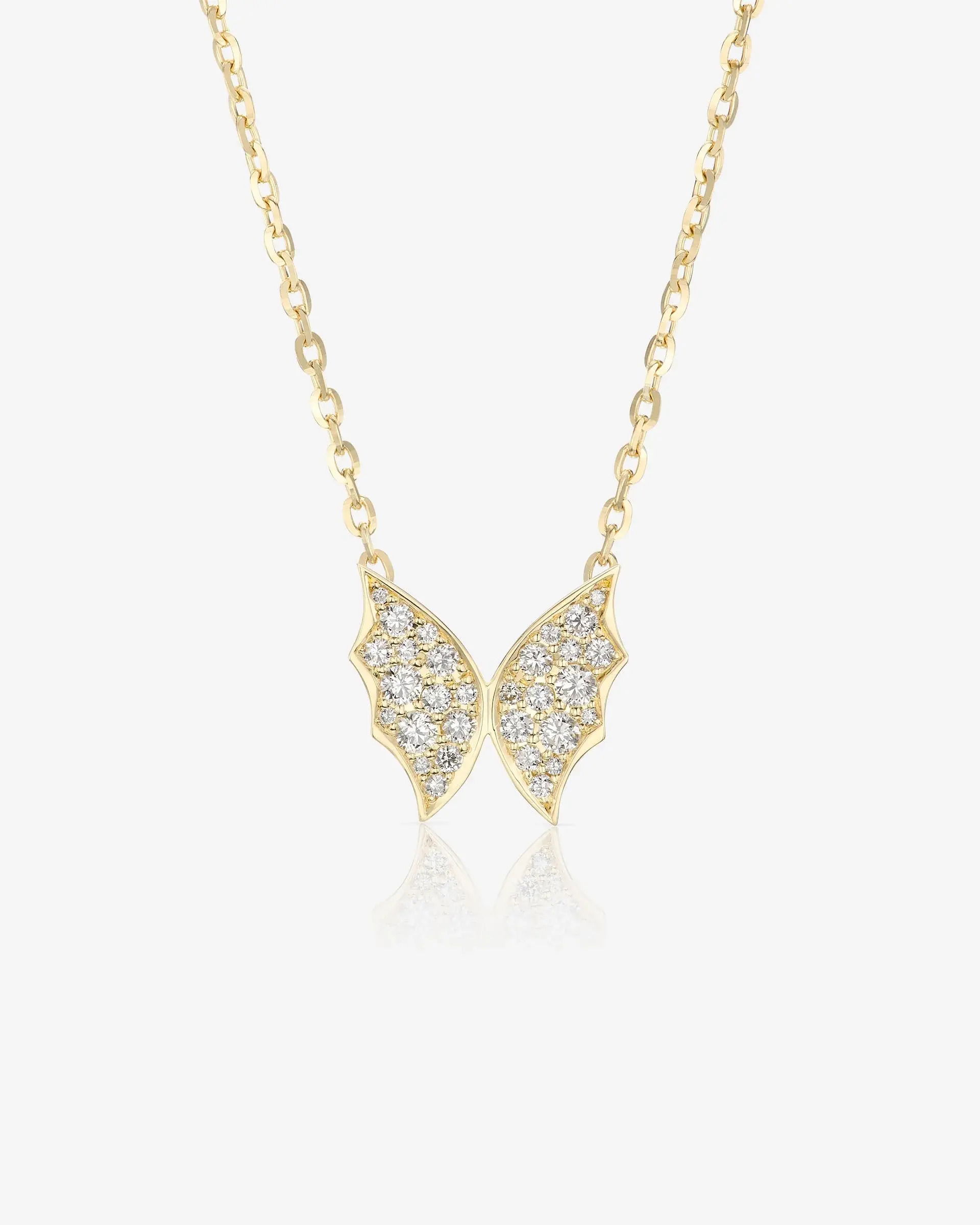 Fly by Night Inline Pendant Style Necklace with White Diamonds in 18kt Yellow Gold